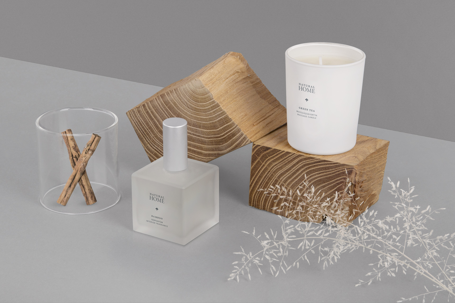 The Adrienne Feller – Natural Home product line offers scent compositions to lend the home a fine fragrance. The collection currently includes three product types: interior fragrance, perfume candles and massage candles. The key colour is white, the pastel colours used for the fragrances were inspired by the main ingredients of the compositions.